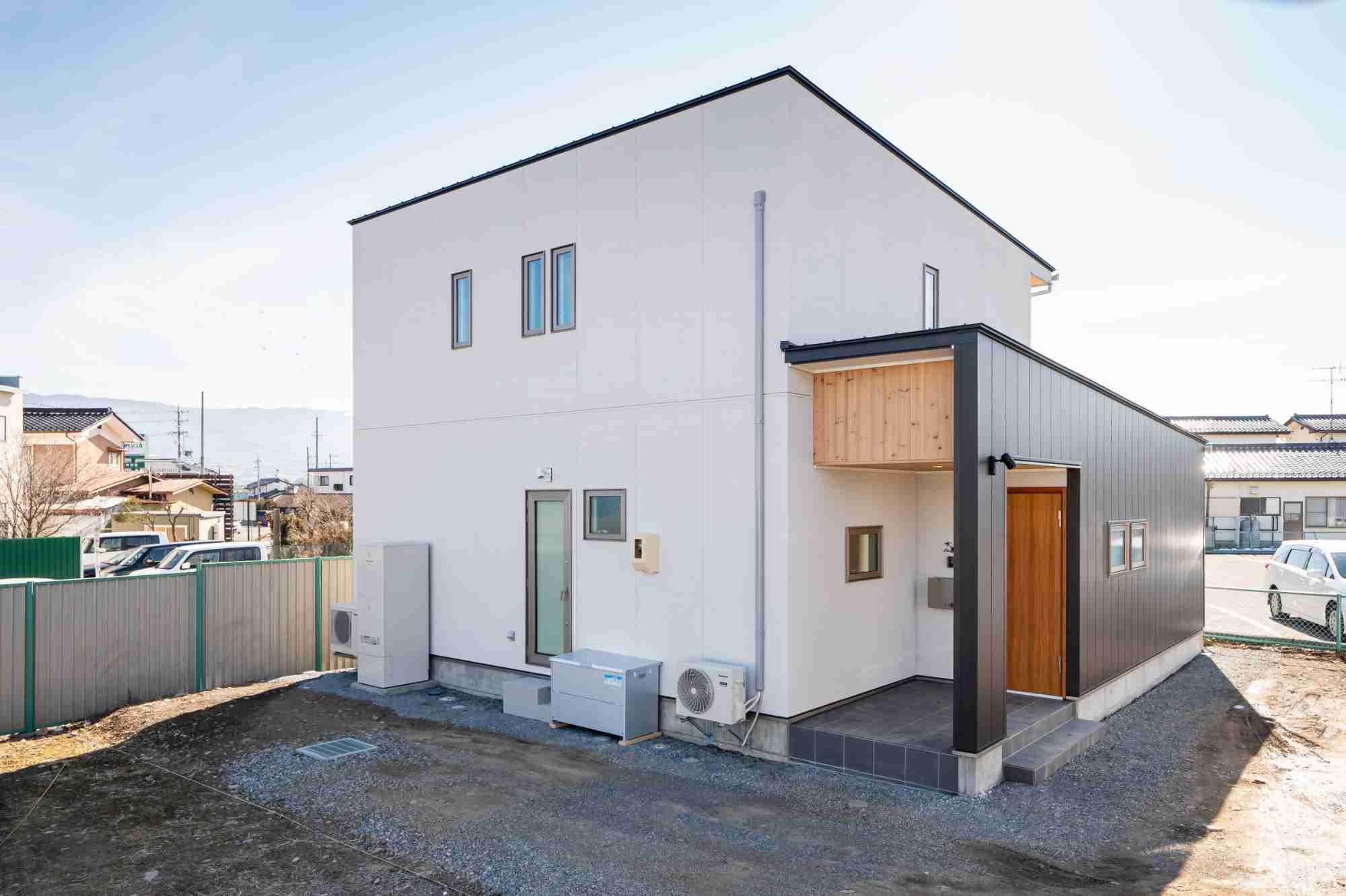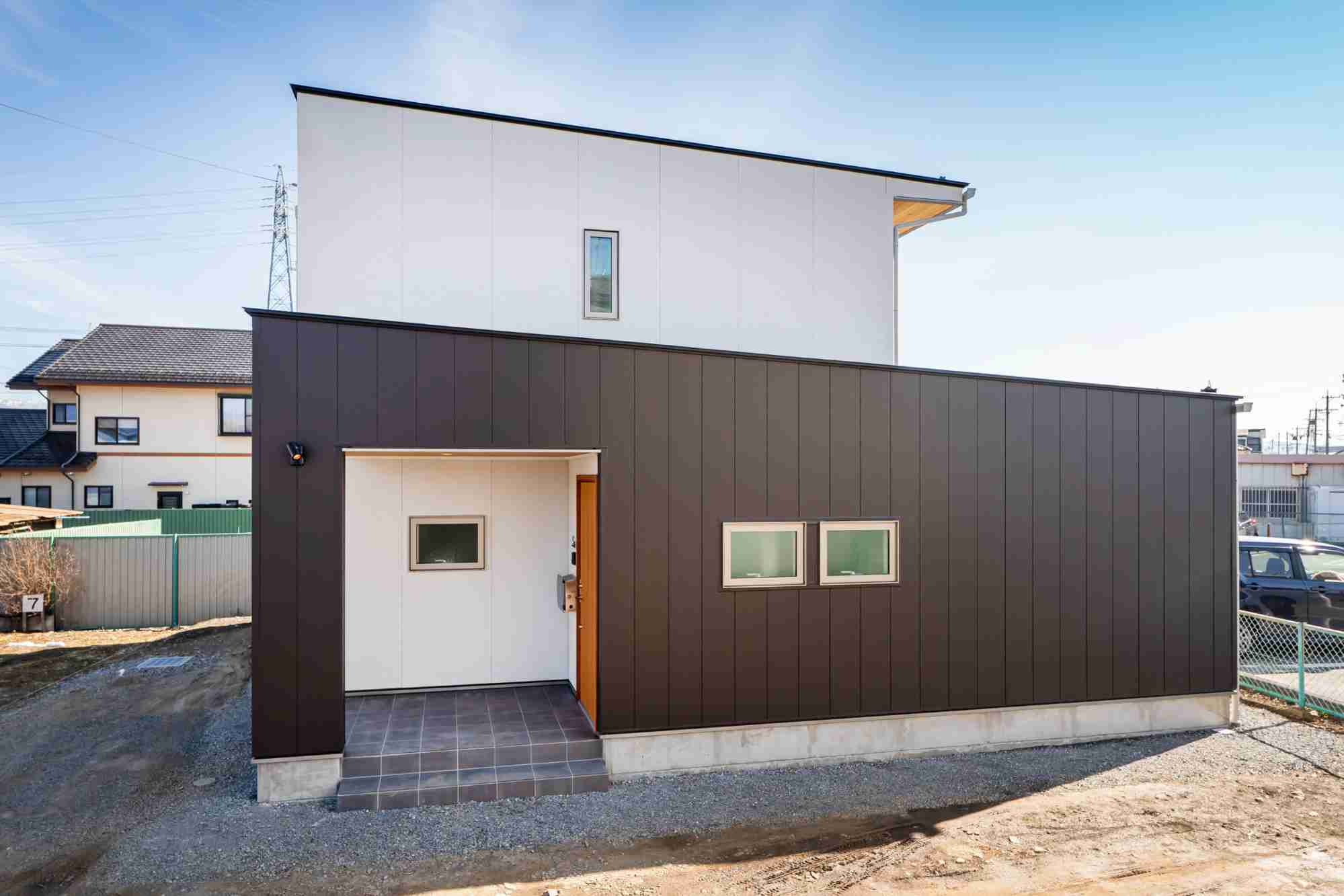 モノクロの落ち着いた外壁が、静かな存在感を放っています。