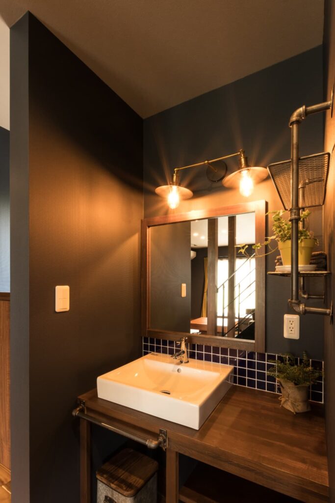 洗面台はリビング内に設け、帰宅後すぐに手洗いができるように工夫しました。