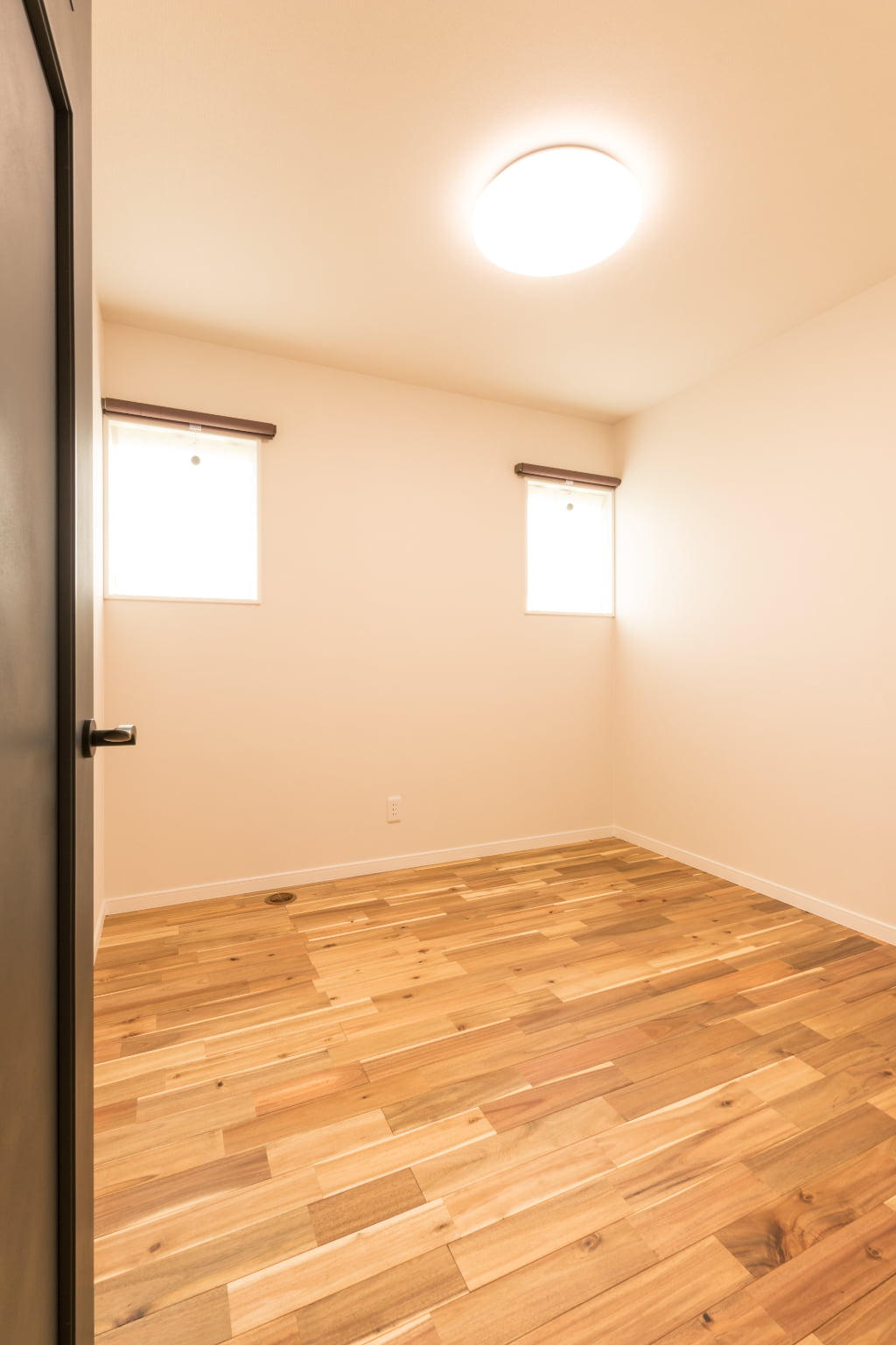 長女と次女の部屋はほぼ同じ間取りとし、ウォークインクローゼットをフリースペースに集中させることで室内をすっきりと保ちます。