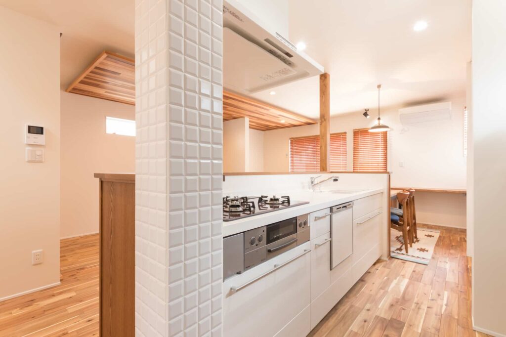 構造柱を上手に活かし、耐震性を保ちつつも邪魔にならないようデザイン。柱をアクセントに取り入れ、機能性と美しさが共存するキッチン空間に仕上げています。